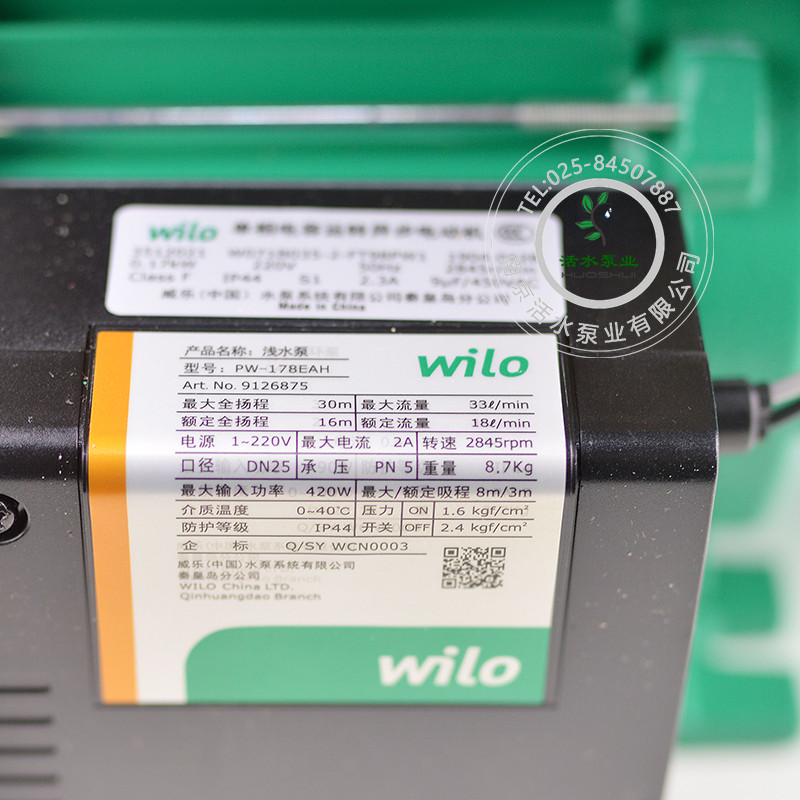 德國威樂PW-178EAH,全自動自吸增壓泵,適合家用自來水增壓、樓頂水箱往下增壓,圖片實物拍攝,參數請見銘牌。