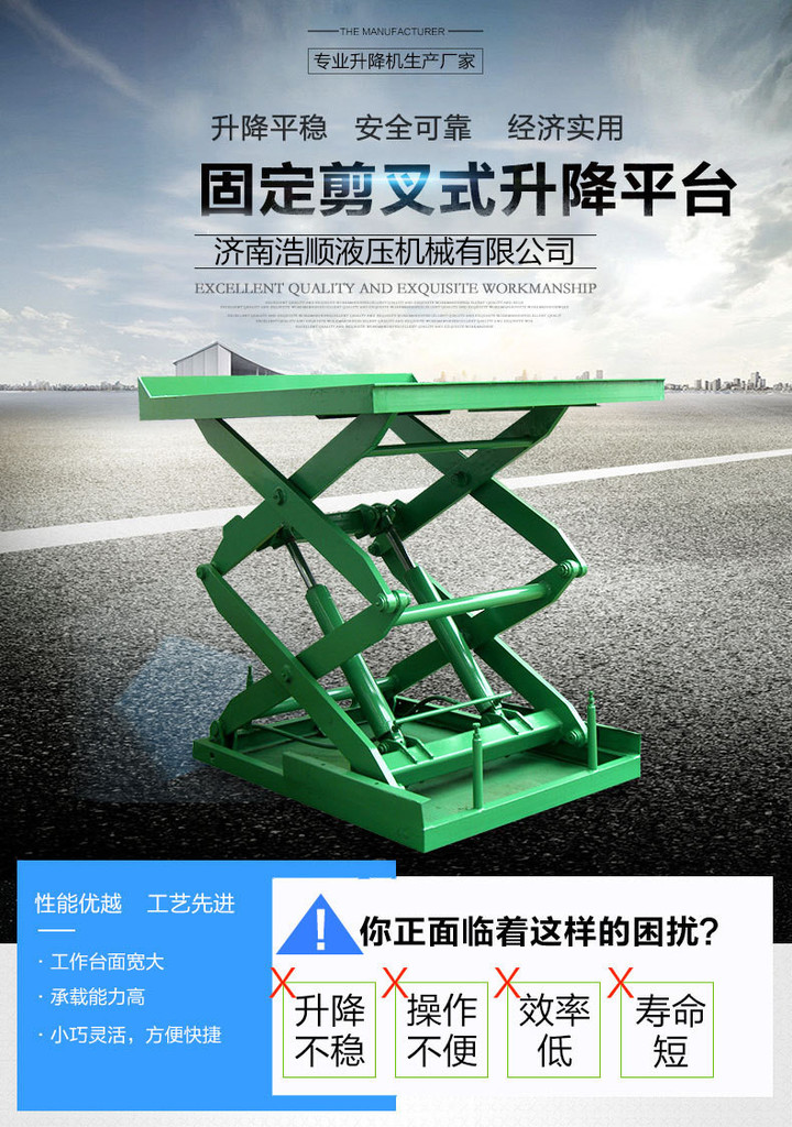 價格說明:固定剪叉升降平臺無標準尺寸,均根據客戶需求尺寸定做,價格根據具體規格所定,該設備為大型機械設備 到各地運費不一 為方便統一設置為包郵 。具體價格請咨詢在線客服:18615603156關經理