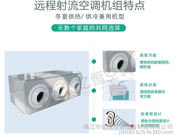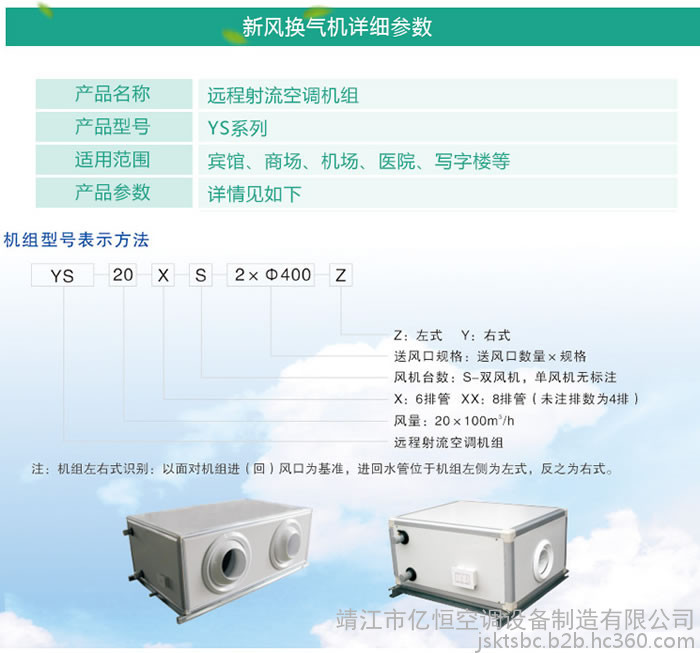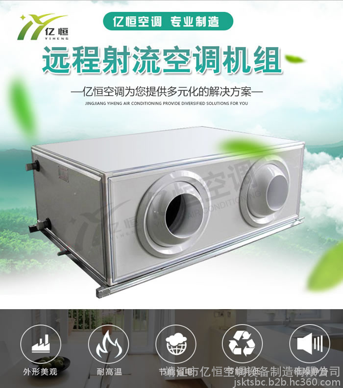 YS系列遠程射流空調(diào)機組為我公司積累多年專業(yè)生產(chǎn)經(jīng)驗,在原柜式空調(diào)機組基礎(chǔ)上,為滿足用戶需要而開發(fā)的空調(diào)機組。該機組在具備冷卻、加熱、干燥、加濕功能的同時,可實現(xiàn)無風管遠距離直接送風,具有節(jié)省空間,降低層高,一次性投資大幅度減小,運行費用低等特點,同時機組送風角度可在60度范圍內(nèi)自由調(diào)節(jié),確保冷熱風送到指定位置,創(chuàng)造出舒適的空調(diào)環(huán)境。