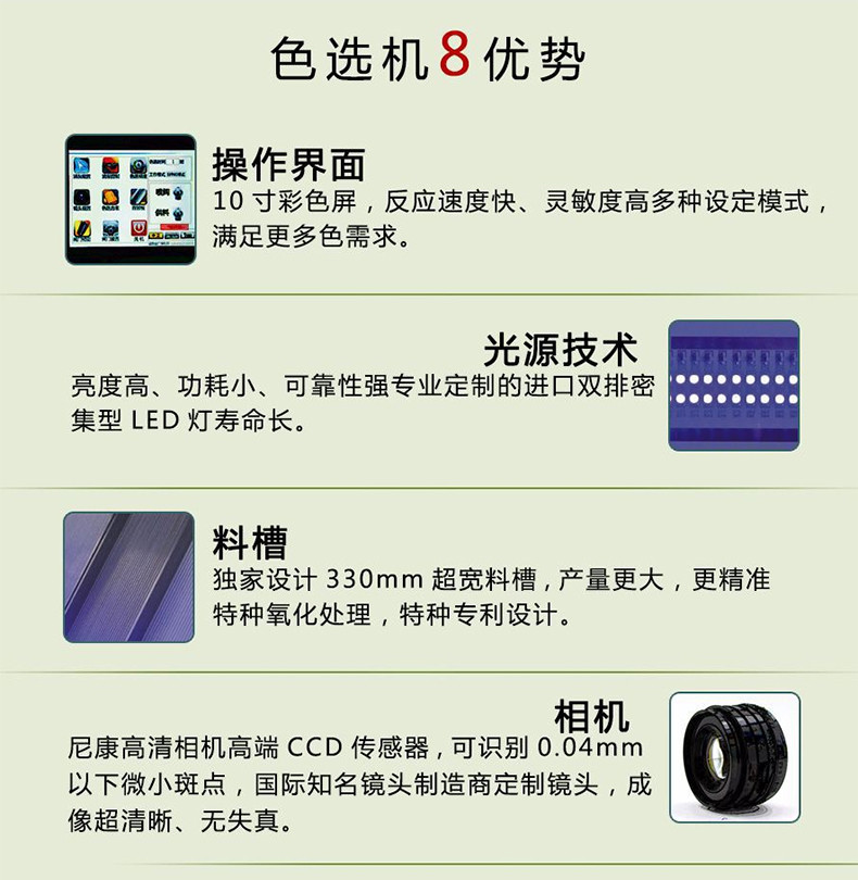 安徽捷泰智能科技有限公司是一家專業從事智能礦石、礦粉、大米、雜糧、塑料、工業等色選機設備的研發、生產、銷售、售后于一體的高新技術企業。由海外華人企業家在行業云集的科教名城合肥進行投資興辦,地址位于安徽省合肥市高新區在泰國建有生產基地。公司自成立以來,先后榮獲“安徽省省級新產品”、“高新技術企業”、合肥市“科技小巨人”企業等榮譽稱號。捷泰智能公司以“技術、質量、服務”為核心,在研發、生產、采購、管理、市場、售后各環節吸納了大量的科班專業人才。公司完全自主知識產權研發的“捷泰”品牌色選機,一經推出便贏得客戶的普遍認可。產品廣泛應用于礦石、礦粉、大米、雜糧、塑料、工業等領域。并遠銷海內外!