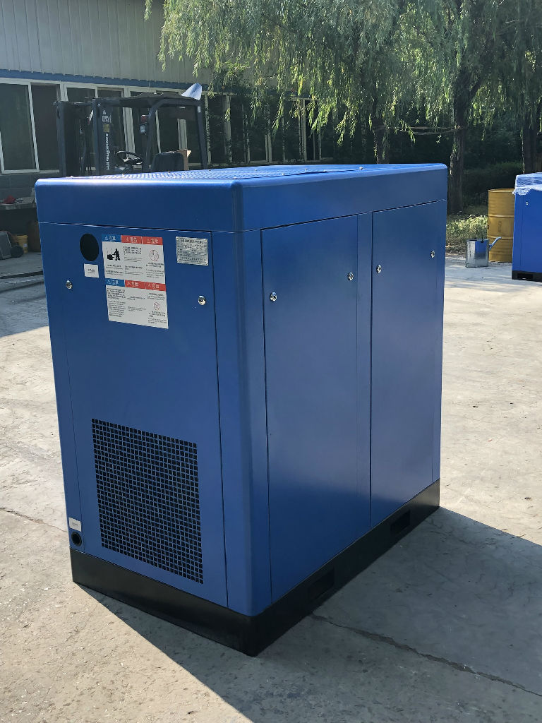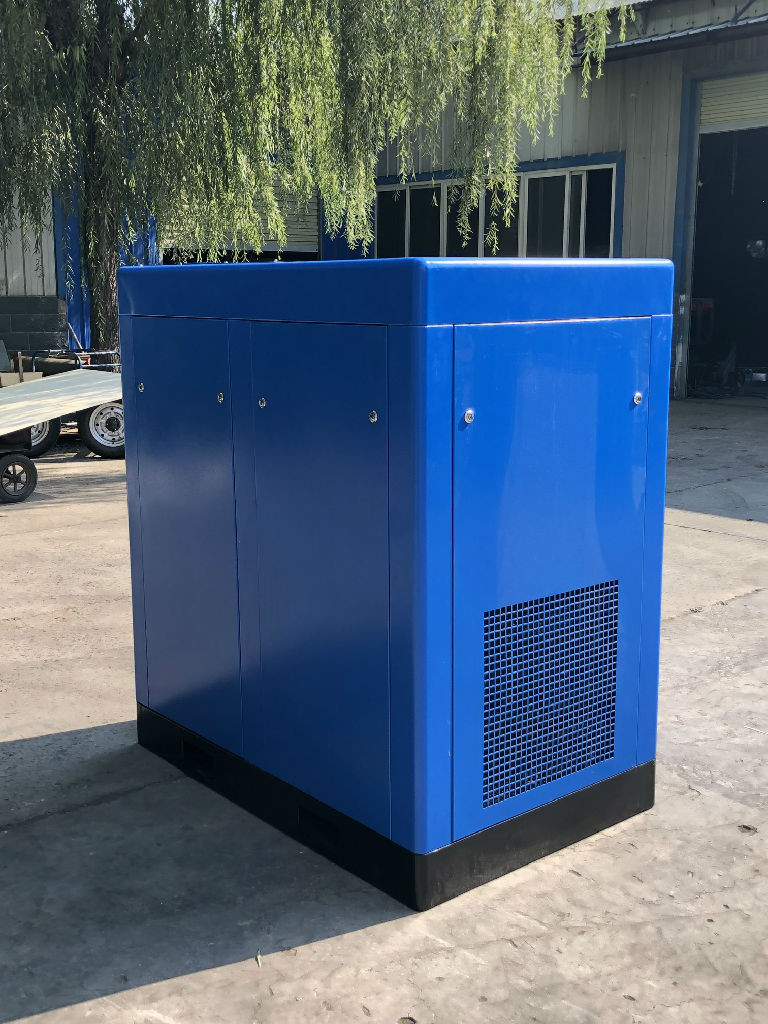 外觀的顏色采用藍色,一眼看上去非常的高端、大氣。2立方工頻式螺桿空氣壓縮機內(nèi)部的冷卻流場布局合理,冷空氣從機組下側(cè)進入壓縮機內(nèi),熱空氣從頂部排出,從而使得冷熱交換順暢。