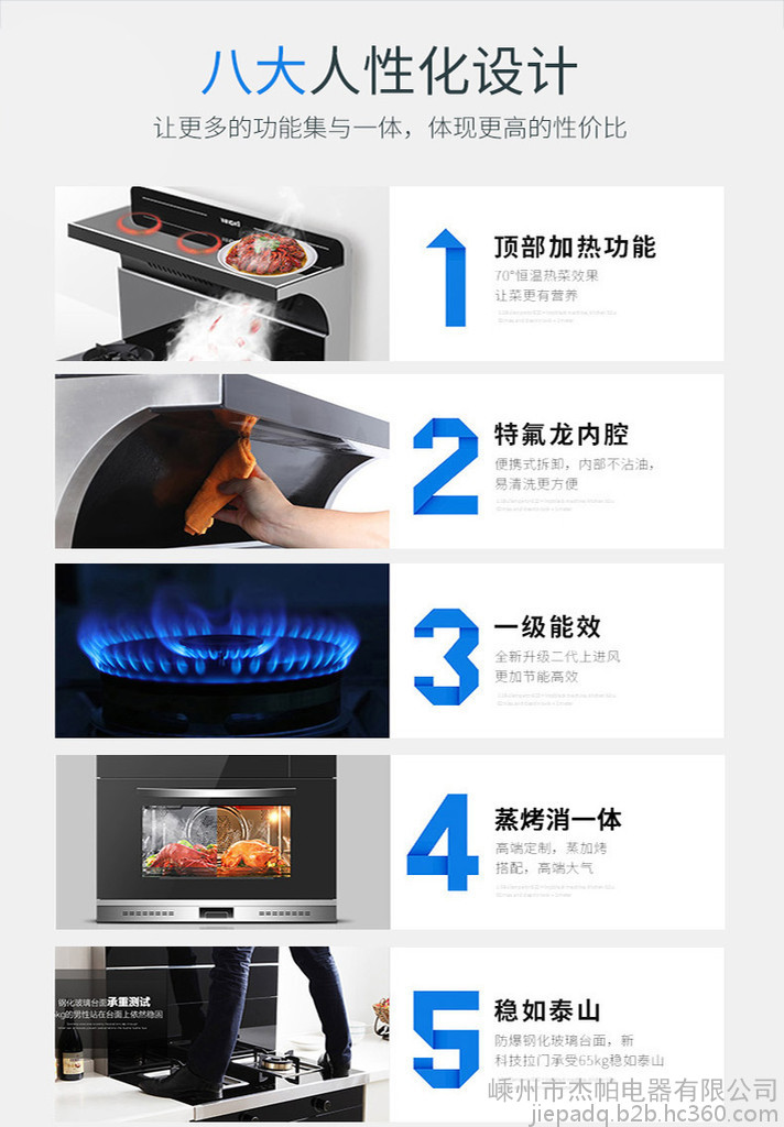 “集成灶十大品牌”杰帕集成灶由嵊州市杰帕電器有限公司制造,公司坐落于“中國廚具之都”--浙江省嵊州市經濟開發區,是一家集設計、研發、生產、營銷、服務于一體的高品質廚衛大家電專業制造商,主要生產集成環保灶等廚電產品,公司成立于2015年,實力雄厚,擁有德國全進口設備生產線,擁有專業自主研發模具6000多副,是目前具有創新力集成灶生產企業之一。 杰帕一直為TCL、愛妻、索菲亞等國內眾多知名品牌提供OEM及相關服務,憑借過硬的技術品質和生產能力,受到各大合作伙伴的廣泛好評,在業內享有盛譽。 2017年,杰帕實施企業轉型戰略規劃,推出自主品牌“杰帕”,立刻受到市場的廣泛關注,憑借扎實的基礎和經驗,杰帕品牌獲得了由集成灶網主辦的“集成灶十大品牌”,以及由國內集成灶行業門戶網站中華環保灶網主辦的“中國集成環保灶十大品牌”等諸多榮譽稱號,受到了廣大消費者的肯定。 杰帕自成立以來,每年均投入巨資進行新產品的研發,從產品性能、外觀、技術等全方面不斷進行改良,2016年合作意大利知名設計公司打造更高端的集成灶。 杰帕公司嚴格遵守和執行各種行業等相關標準和要求,始終堅持“全程質量零缺陷”的生產管理理念,堅持“品質取勝”為市場競爭基本原則,致力于為中國百姓廚房提供高品質的產品和服務,打造真正的“快樂、健康、幸福”的廚房生活!