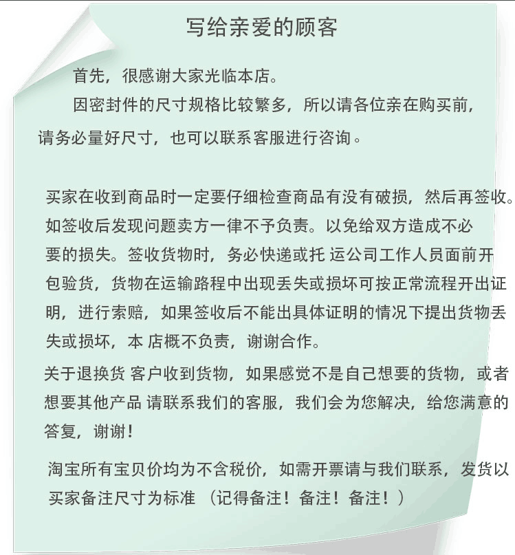 由于密封件,油封,O型圈品種繁多,無法一一列出,請購買前良好尺寸