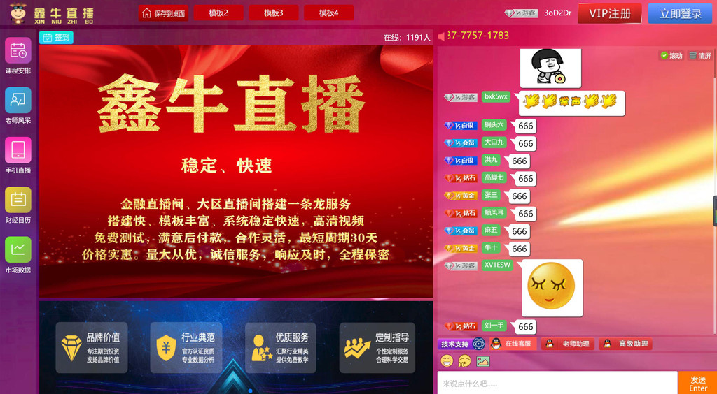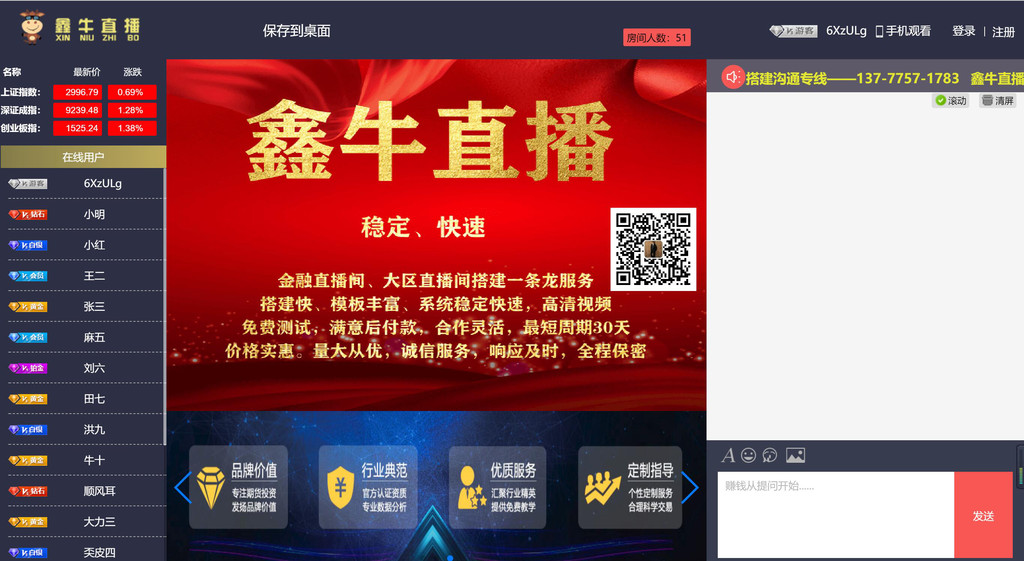 大區直播間很多軟件公司都會搭建,但是系統穩定,可以承載千人萬人在線的大區直播系統少之又少,服務完善又及時的更少。鑫牛直播技術團隊擁有十幾年軟件開發經驗,擅于處理高并發情況下的數據優化,服務完善,大區直播相關的服務器、域名、流媒體,以及培訓指導,美工設計,鑫牛直播會全部幫您做好,即使您公司沒有一個美工,沒有一個IT,都沒有關系,鑫牛直播整個團隊都會為您提供服務。因為始終清楚,只有好的產品加上滿意的售后服務,才能贏得客戶的新人和支持!