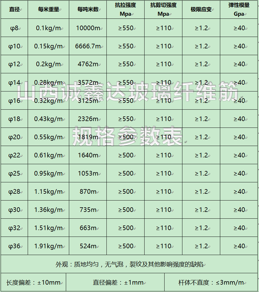 產品參數: 抗拉強度≥550Mpa,抗剪切強度≥110Mpa,彈性模量≥40Gpa