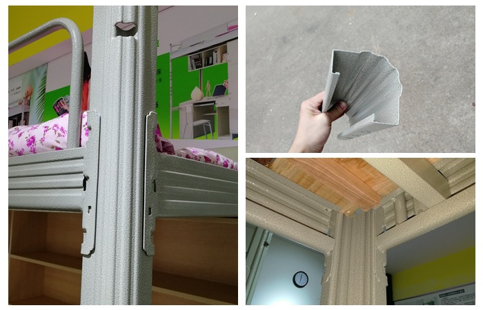 學(xué)生鐵床的材質(zhì)有優(yōu)劣之分,此外,厚度也會(huì)影響宿舍床的質(zhì)量,并且板材越厚價(jià)格也會(huì)越高。可以通過(guò)這幾個(gè)方面來(lái)查看質(zhì)量的好壞。比如:憑手感、觀(guān)察顏色、查看亮度等。優(yōu)質(zhì)的材料各種物理指標(biāo)都會(huì)更好,生產(chǎn)出的學(xué)生床也會(huì)更加結(jié)實(shí),保證學(xué)校學(xué)生床不會(huì)出現(xiàn)搖晃、坍塌等故障。好的冷軋鋼板,手感相對(duì)的光滑平坦,材質(zhì)看著相對(duì)的有質(zhì)感,摸起來(lái)毫無(wú)生硬感,同時(shí)色澤度也相對(duì)的飽滿(mǎn)。嚴(yán)抓制作工藝,保證學(xué)校學(xué)生床不會(huì)出現(xiàn)毛刺、鼓包等問(wèn)題。