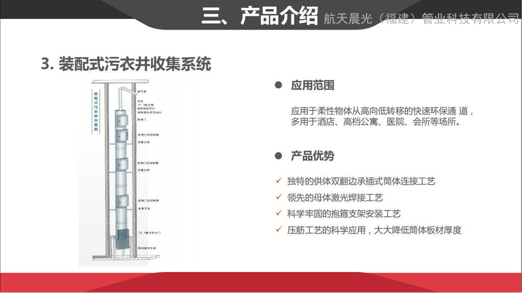 我公司研發(fā)的預(yù)制式不銹鋼污衣井系統(tǒng),是結(jié)合國際萬豪、喜達(dá)屋等高端酒店管理公司標(biāo)準(zhǔn)和要求而研發(fā)。