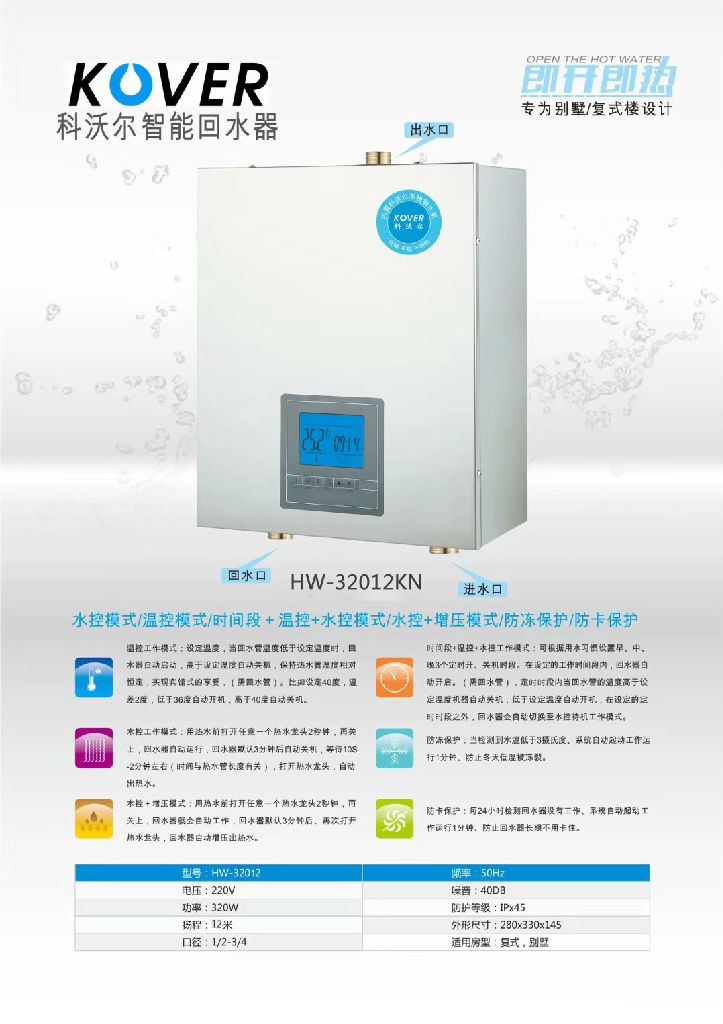 科沃爾HW-32012熱水循環系統。水泵功率320W,流量3.5立方/時,揚程12米。