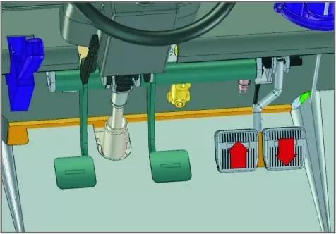 選用第三踏板,腳制動,加速雙踏板全部采用前掛式,腳步空間大