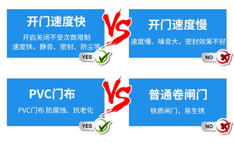 | 密封性能 | 堆積門門簾底端裝有加重隔氣布,它可與各種不平坦的地面嚴(yán)密結(jié)合,門框兩側(cè)滑道 | |