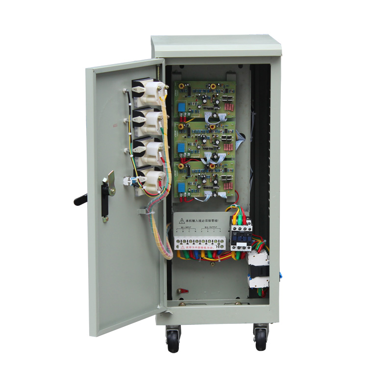 20KVA及以上規(guī)格TNS系列高精度自動(dòng)三相交流穩(wěn)壓器,由三只相應(yīng)規(guī)格的單相自動(dòng)穩(wěn)壓電源構(gòu)成,采用自耦式。