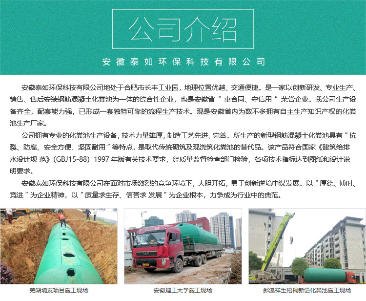 矩形化糞池有磚砌及混凝土澆注兩種方式,化糞池的容積可根據運用衛生設備的人數、修建物用水規范、