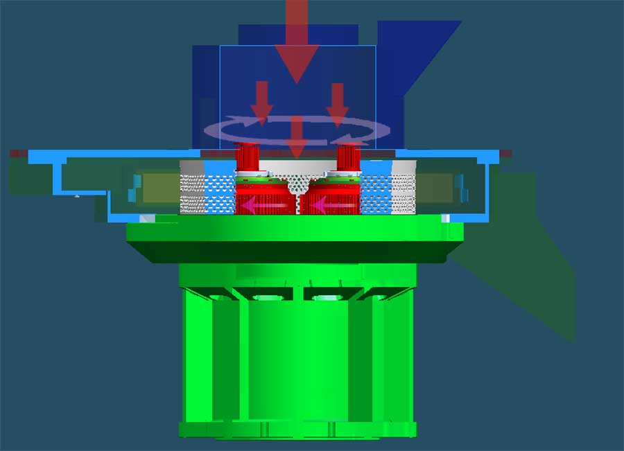 ●粉碎過的材料經(jīng)過進料口進入顆粒機內部,內部由兩個旋轉的的渦輪組成,通過旋轉使材料擠壓成固態(tài),再從外圍模具孔排出來,從而實現(xiàn)顆粒狀。