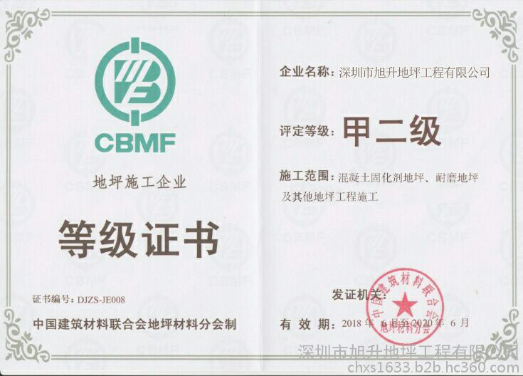 凝土地面。使用越久光澤度越好,且壽命更可達到20 年以上,被公認為地坪類產品使用壽命的產品。并大量用于一般高硬度軍事設施、國防、防空洞、遂道、大型橋梁、電力、倉儲物流中心、碼頭、直升機停機砰、重型機械廠房、飛機維修庫等混凝土、水磨石或金鋼砂硬化劑地面上。