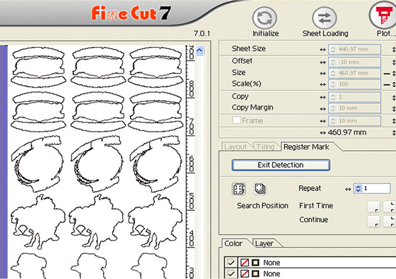 同時(shí)制作二幅圖,一幅提供打印機(jī)打印,另一幅(巡邊切割圖)提供切割機(jī)定位切割。打印機(jī)應(yīng)設(shè)置高精度。