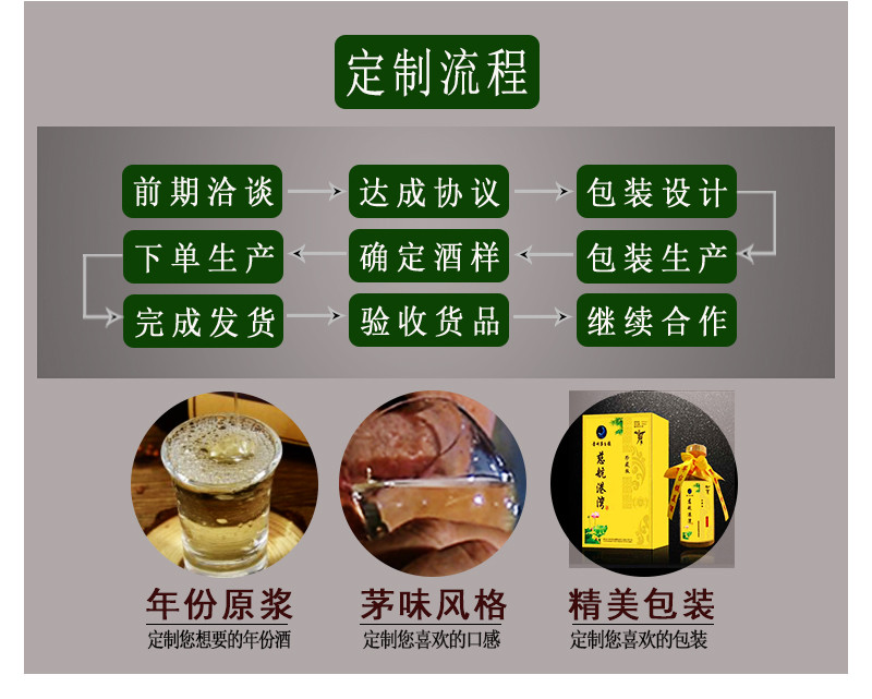 簡   介: 公司簡介: “傳世佳釀,獨具匠心”.貴州省仁懷市獨具匠心酒業坐落于神秘的赤水河畔,茅臺7.5平方公里核心醬香型白酒產區地帶,是一家集醬香型白酒生產、開發和銷售于一體的綜合性企業。 公司占地8500平方米,年釀酒量2000余噸,儲存原漿基酒20000余噸,為本地酒企提供優質原漿基酒,深受顧客的信賴。 公司為了能做強做大,增強抗風險能力,董事會決定于2016年10月注冊獨具匠心酒業銷售公司,組建營銷團隊,向全國拓展銷售市場,打造醬香白酒知名品牌!公司也為顧客提供OEM貼牌生產酒,個性化訂制酒,重品質,重服務,一切服務以客戶的滿意度為宗旨! 本公司主導產品為“王典”系列酒。以本地優質糯高粱,小麥為原料,取赤水河之靈泉秀水,按照茅臺酒的傳統工藝,精心釀制而成,所有成品酒,至少得經過5年的儲存時間,使酒質老熟,化驗合格后方能包裝出廠。具有醬香突出、酒體醇厚、優雅細膩、空杯留香持久的特點!