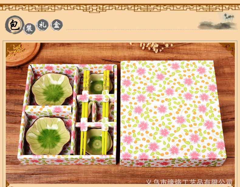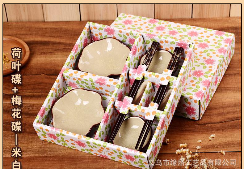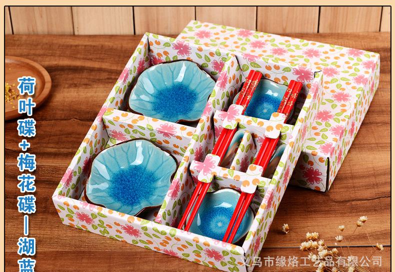 創意陶瓷餐具套裝碗筷子 商務喬遷禮品結婚婚慶回禮 冰裂釉8件