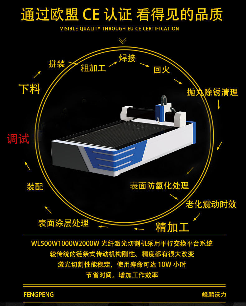 簡   介: 安徽峰鵬智能科技有限公司,作為一家專注于智能自動化生產本體的研發和制造的高新技術企業,是行業中佼佼者的智能制造整體方案供應商,位于“大湖名城,創新高地”——合肥,同時,安徽峰鵬智能科技在武漢、濟南等地均設有生產加工基地,如有需要可聯系當地采購。沃力峰鵬在研發、制造、銷售金屬激光加工設備(適用于金屬切割,造型,雕刻)、石材定制加工設備(適用于各大類石材平面,立體加工)、木工定制生產線(適用于定制家具及木器具生產加工)、機械手及自動化生產線(適用于定制機械手以及自動化與 ERP管理)方面的專業廠家。 峰鵬還是一家年輕、有活力的創新型公司,擁有多名10年行業經驗的工程師,配合先進的加工技術和精湛的裝配工藝,并有嚴格的質檢把關,致力于為用戶提供長期工業化使用可靠的生產設備。通過了歐盟CE認證,并榮獲AAAA級重合同守信用企業。作為國內定制數控設備行業的后起之秀,峰鵬很注重產品的質量與口碑,質量為先、信譽為重、管理為本、服務為誠;公司全系列產品的配件均以真材實料,拒絕弄虛作假,均為國外進口和國內一線品牌配件。以良好的配件和精湛的加工工藝為用戶提供物超所值的產品。 峰鵬堅持“以客戶為中心”的發展理念,堅持專業化與實用化同步的設計原則,堅持培養客戶的合作伙伴關系,堅持滿足客戶的個性化需求,致力于成為CNC數控行業的領軍企業。