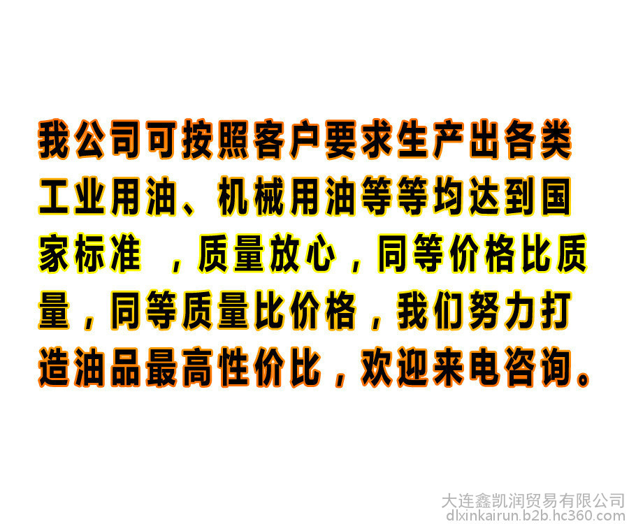 ? 公司在消費者當中享有較高的地位,公司與多家零售商和代理商建立了長期穩定的合作關系。大連鑫凱潤貿易有限公司經銷的淬火液、單晶硅切削液、液壓油、拉延油、等品種齊全、價格合理。公司實力雄厚,重信用、守合同、保證產品質量,以多品種經營特色和薄利多銷的原則,贏得了廣大客戶的信任。