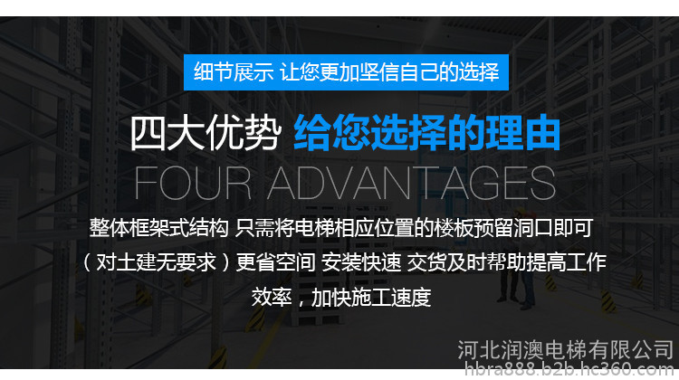 河北潤澳電梯有限公司,是經質量監督檢驗檢疫總局批準、頒發專業許可證的雜物電梯生產廠家,集雜物電梯研發、設計、制造、安裝、改造、維修、保養于一體的民營企業。