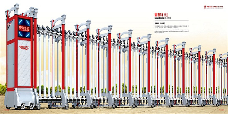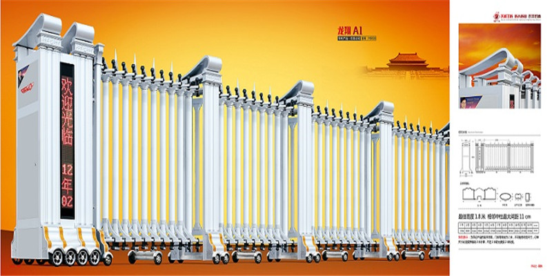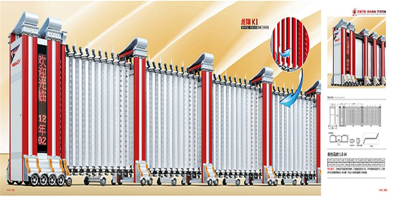 使用范圍 伸縮門適用于工礦企業、機關院校、娛樂場所、賓館飯店等公共場合。伸縮門可分為不銹鋼伸縮門和鋁合金伸縮門兩種。 折疊編輯本段特點 1、智能紅外線防爬裝置。 2、特種型材:光澤無限,不易粘塵,不被污染氣體腐蝕。 3、工程塑料:門體主要塑料件采用高質量工程塑料,韌性高,耐沖擊,抗扭曲,耐磨,耐凍,耐曬,不易老化,使用壽命長。 4、智能紅外線探頭防碰撞裝置:門體在關閉過程中遇人或異物30-50cm可自動返回運行。 標準結構保證交叉管堅固,減少運行噪音。 5、美化環境、改善企業面貌、提升企業形象。