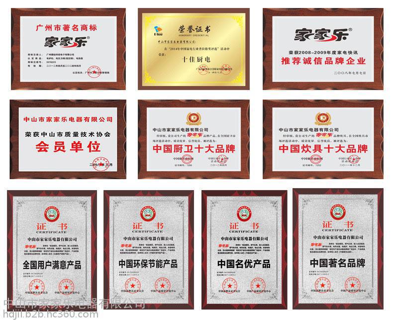 中山市家家樂電器有限公司是以生產和銷售廚房電器為主的現代化企業,主要專注于吸油煙機、燃氣灶具、消毒柜、熱水器、凈水器等廚房電器領域。公司擁有占地面積達5萬平方米的花園式工廠,年生產規模超過百萬臺,成為門類齊全的廚衛電器生產型企業。企業率先在行業里通過ISO9001:2000國際質量管理體系認證、ISO14001:2004國際環境管理體系認證、3C認證;并獲得了中國環保產品認證和中國節能產品認證、消費者信得過產品榮譽、中國**品牌、中國炊具十大品牌、中國廚衛十大品牌、中國十佳廚電普拉格獎等100多項獎項,并一舉獲得廣州市**商標。